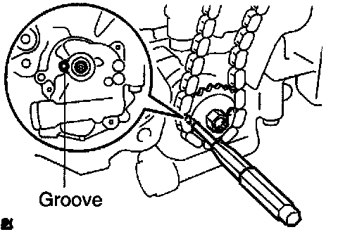 g. Align an adjusting hole of the oil pump drive shaft gear with the groove of the oil pump.