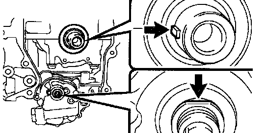 2 Using the crankshaft pulley bolt, turn the crankshaft and set the set key on the crankshaft upward.