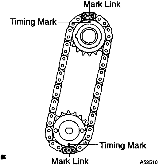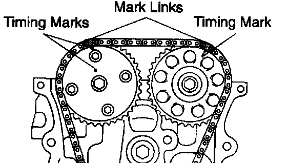 c. Align the mark links (yellow colored links) with the timing marks of the gear as shown in the illustration.