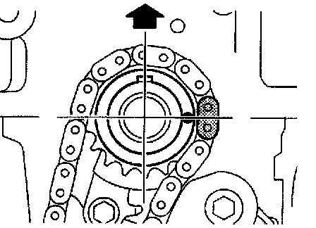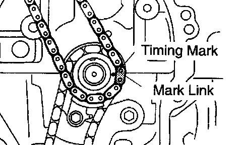 b. Align the mark link (blue or orange colored link) with the timing mark of the crankshaft timing gear.