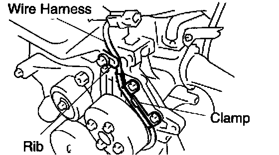 b. Confirm the wire harness of the crank position sensor is placed as shown in the illustration.