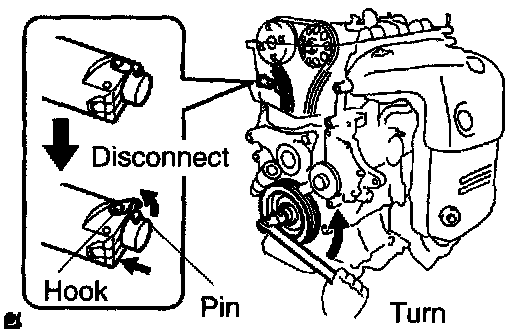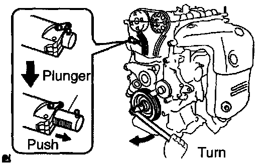 c. Turn the crankshaft counterclockwise, and disconnect the plunger knock pin from the hook.