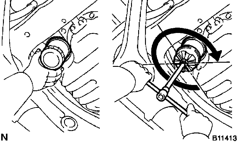 c. Lightly screw the oil filter into place, and tighten it until the gasket contacts the seat.