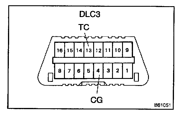2. Using SST (diagnosis check wire), make a short-circuit between terminals TC (13) and CG (4) of the DLC3 connector.