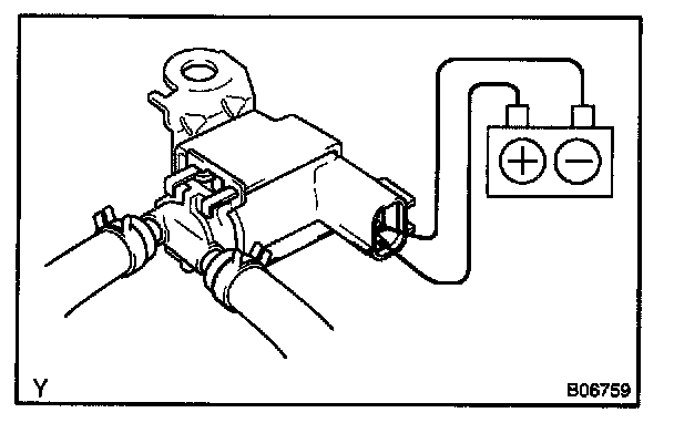 2. Disconnect the positive (+) and negative (-) leads from the battery from the VSV terminals for the EVAP.