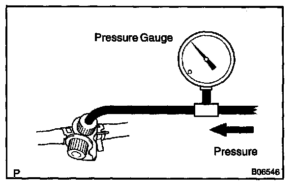 a. Disconnect the EVAP line hose from the charcoal canister side and then pressurize and make the internal pressure in the fuel tank 4 kPa (41 gf/sq.cm, 0.58 psi).