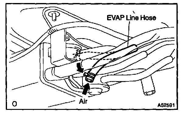 HINT: If you can not add pressure, you can conclude that the hose connecting the VSV - canister - fuel tank has slipped off or the VSV is open.