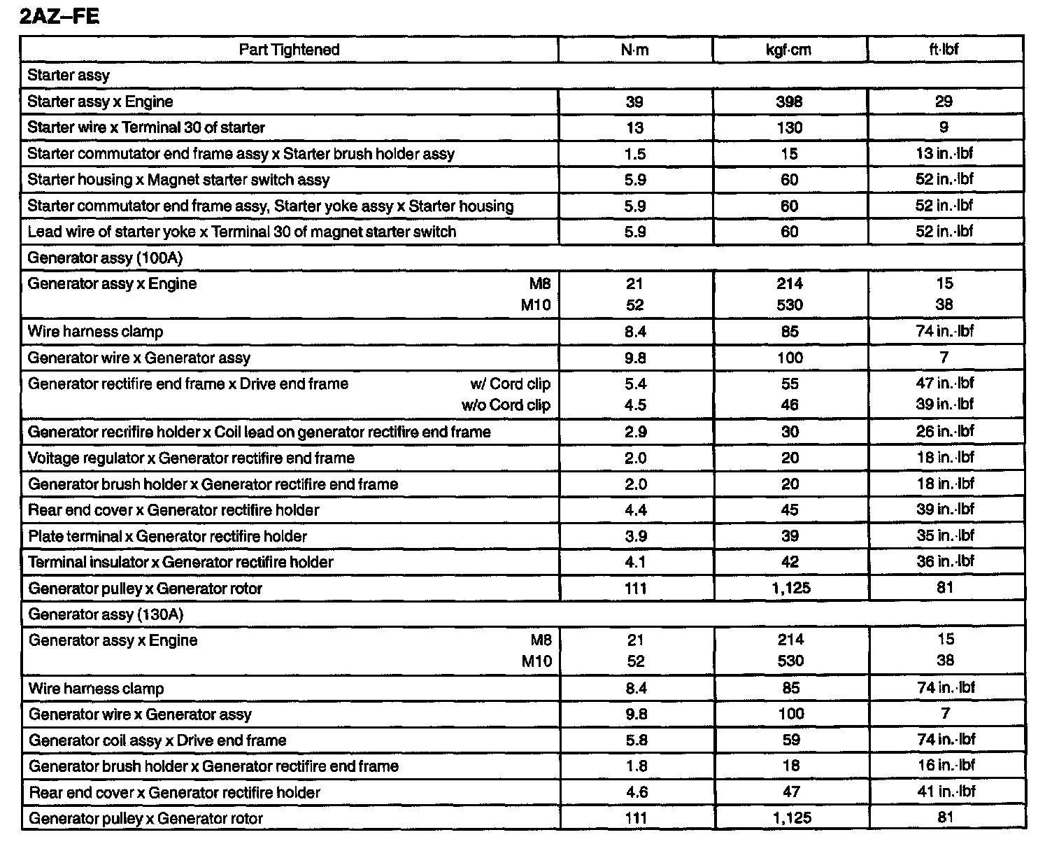 Starting And Charging - Torque Specification: