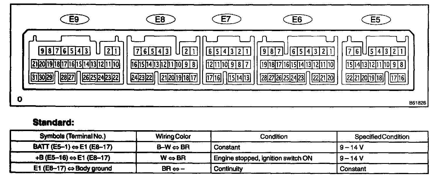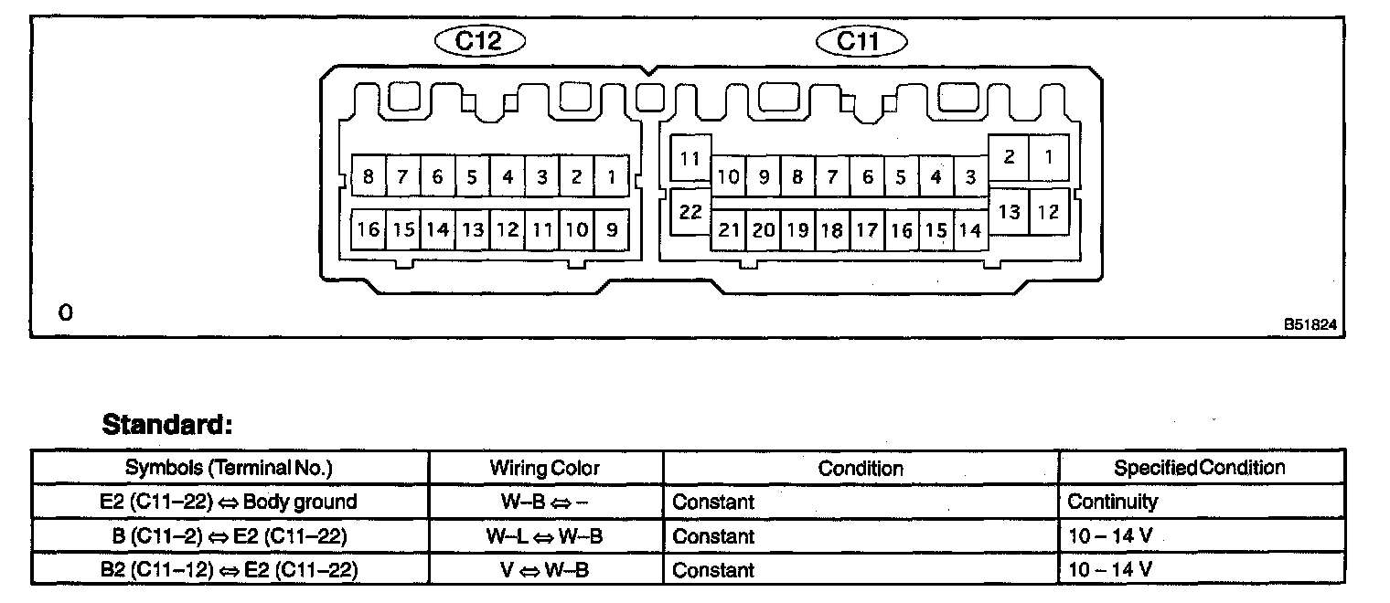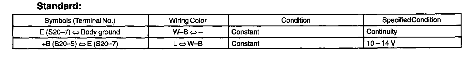 - Before the measurement, check the power source voltage (10 - 14 V when IG ON) and body ground (5 ohms or less between each ground terminal and the engine body, when IG OFF).