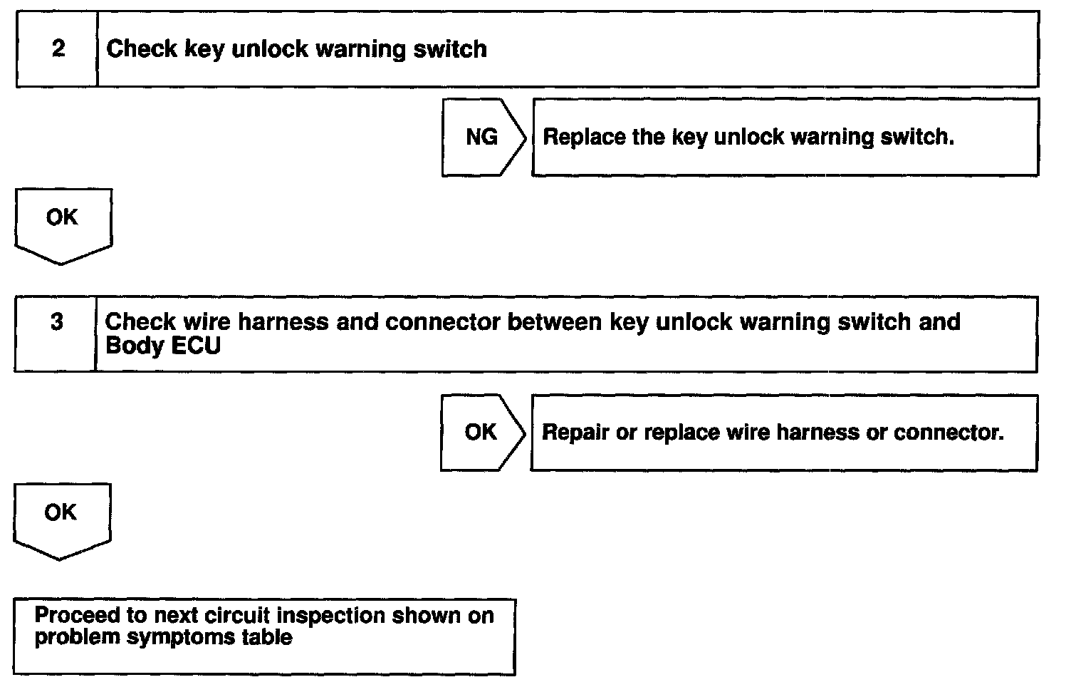 CIRCUIT DESCRIPTIONThe key unlock warning switch goes on when the ignition key is inserted the key cylinder and goes off when the ignition key is removed.