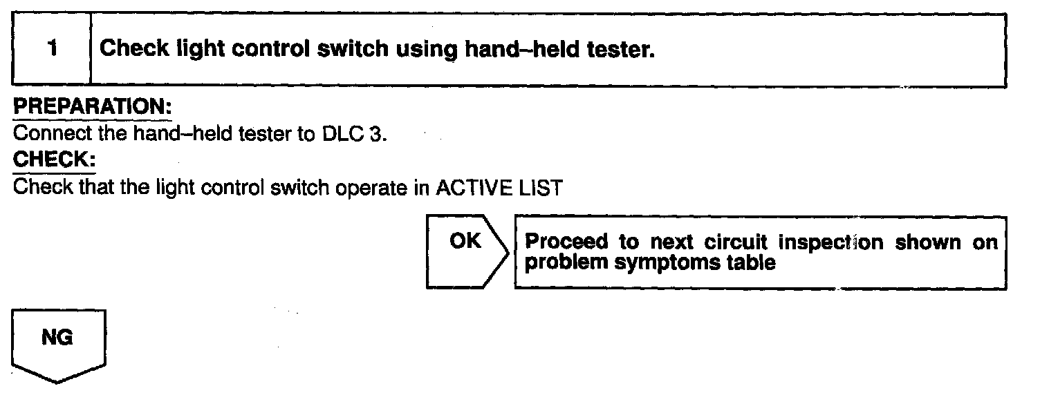 In case of using the hand-held tester, start the inspection from step 1 and in case of not using the hand-held tester, start from step 2.