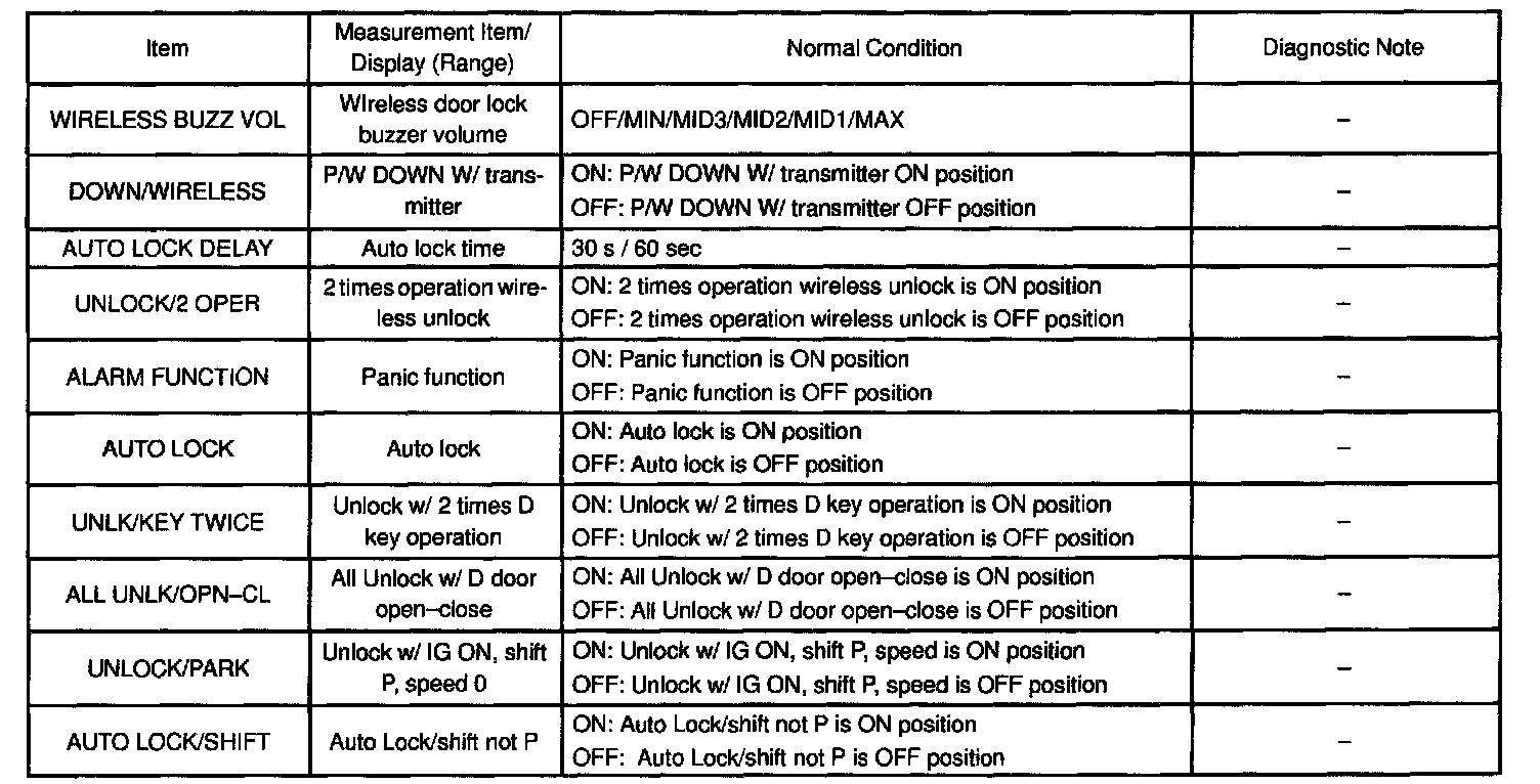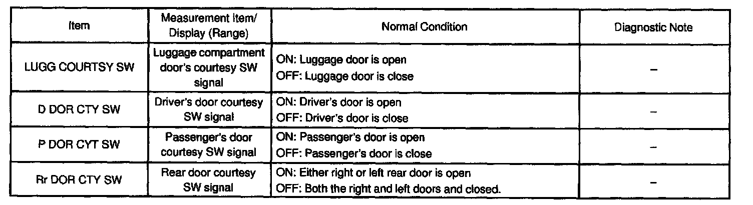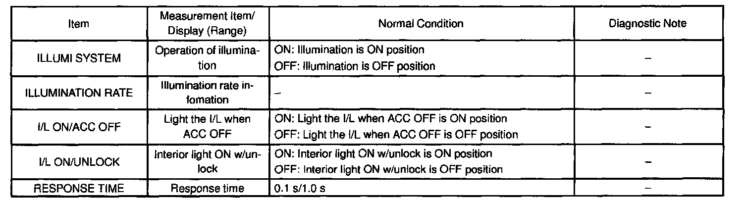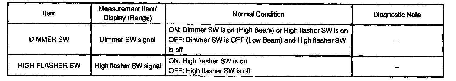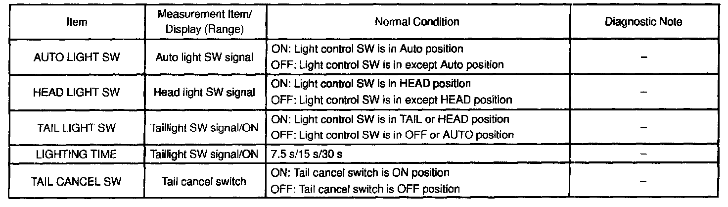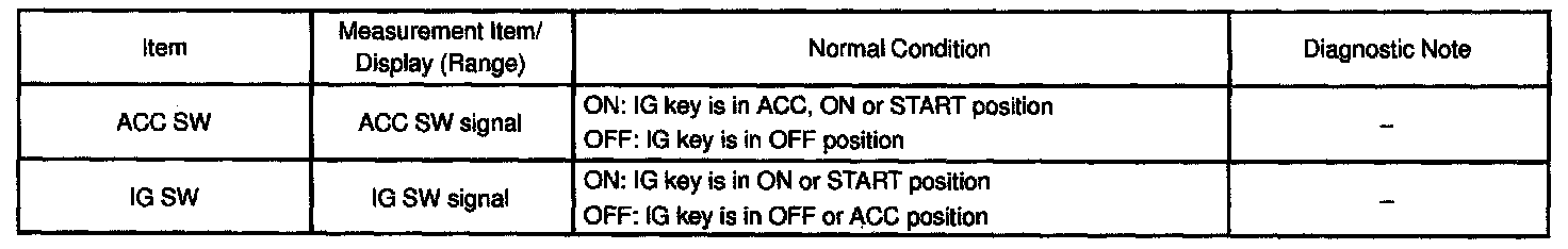 DATA LISTHINT: According to the DATA LIST displayed by the hand-held tester, you can read the value of the switch, sensor, actuator and so on without parts removal. Reading the DATA LIST as a first step of troubleshooting is one of the method to shorten the labor time.
