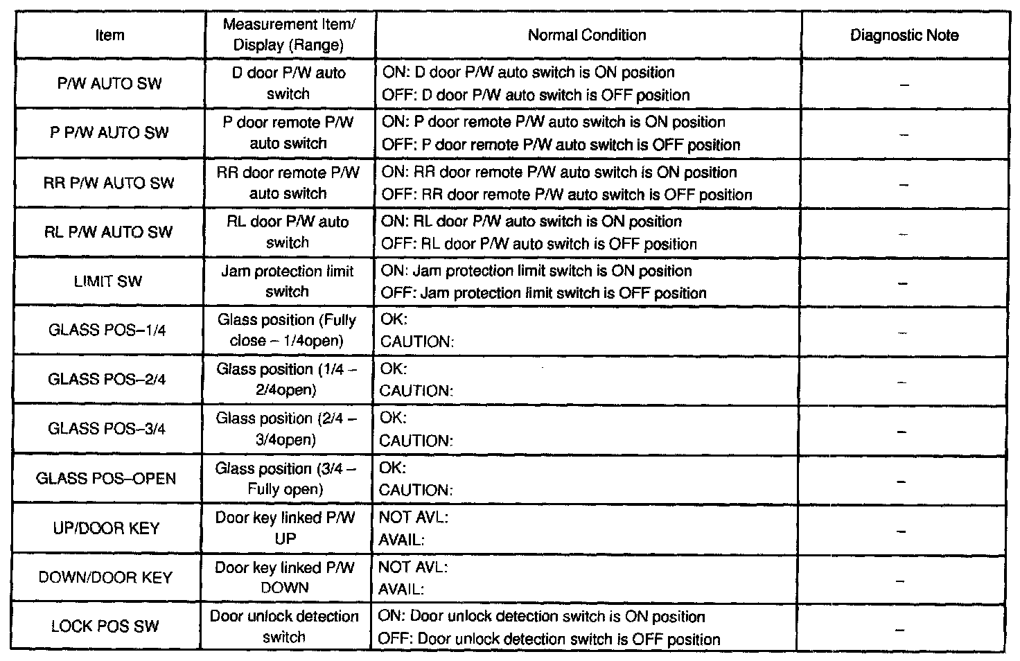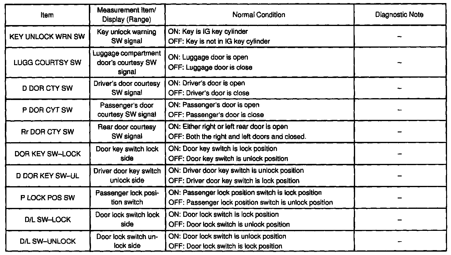 DATA LISTHINT: According to the DATA LIST displayed by the hand-held tester, you can read the value of the switch, sensor, actuator and so on without parts removal. Reading the DATA LIST as a first step of troubleshooting is one of the method to shorten the labor time.