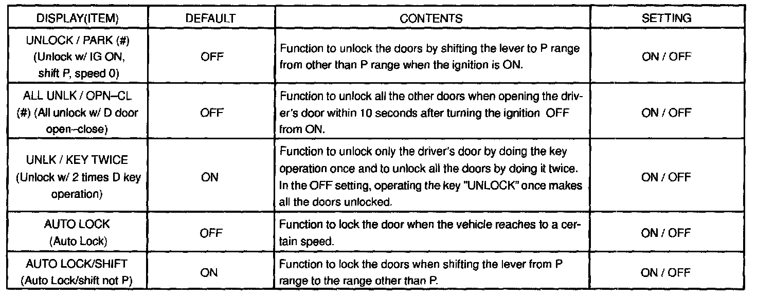 CUSTOMIZE PARAMETERThe followings are the possible items to be customized.