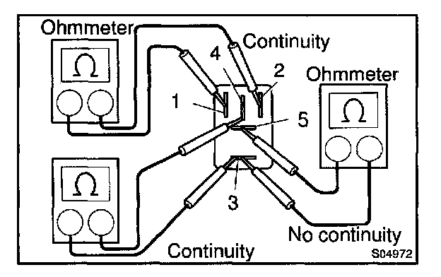 b. Using an ohmmeter, check that there is no continuity between terminals 3 and 4.