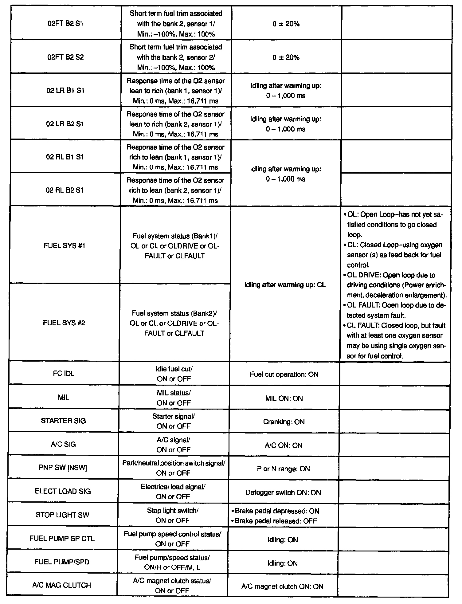 According to the DATA LIST displayed by the OBD II scan tool or hand-held tester, you can read the value of the switch, sensor, actuator and so on without parts removal. Reading the DATA LIST as a first step of troubleshooting is one of the method to shorten the labor time.