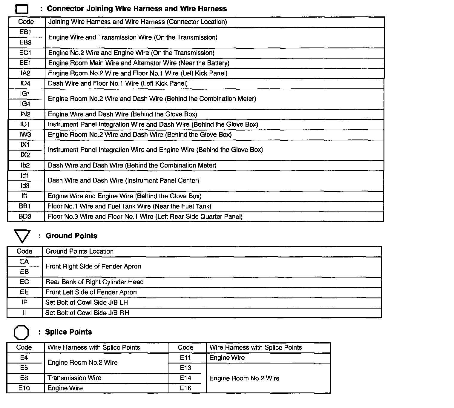 Locations: The locations of components, connectors, ground points, and splices referred to within these diagrams can be found at Vehicle Locations. Locations