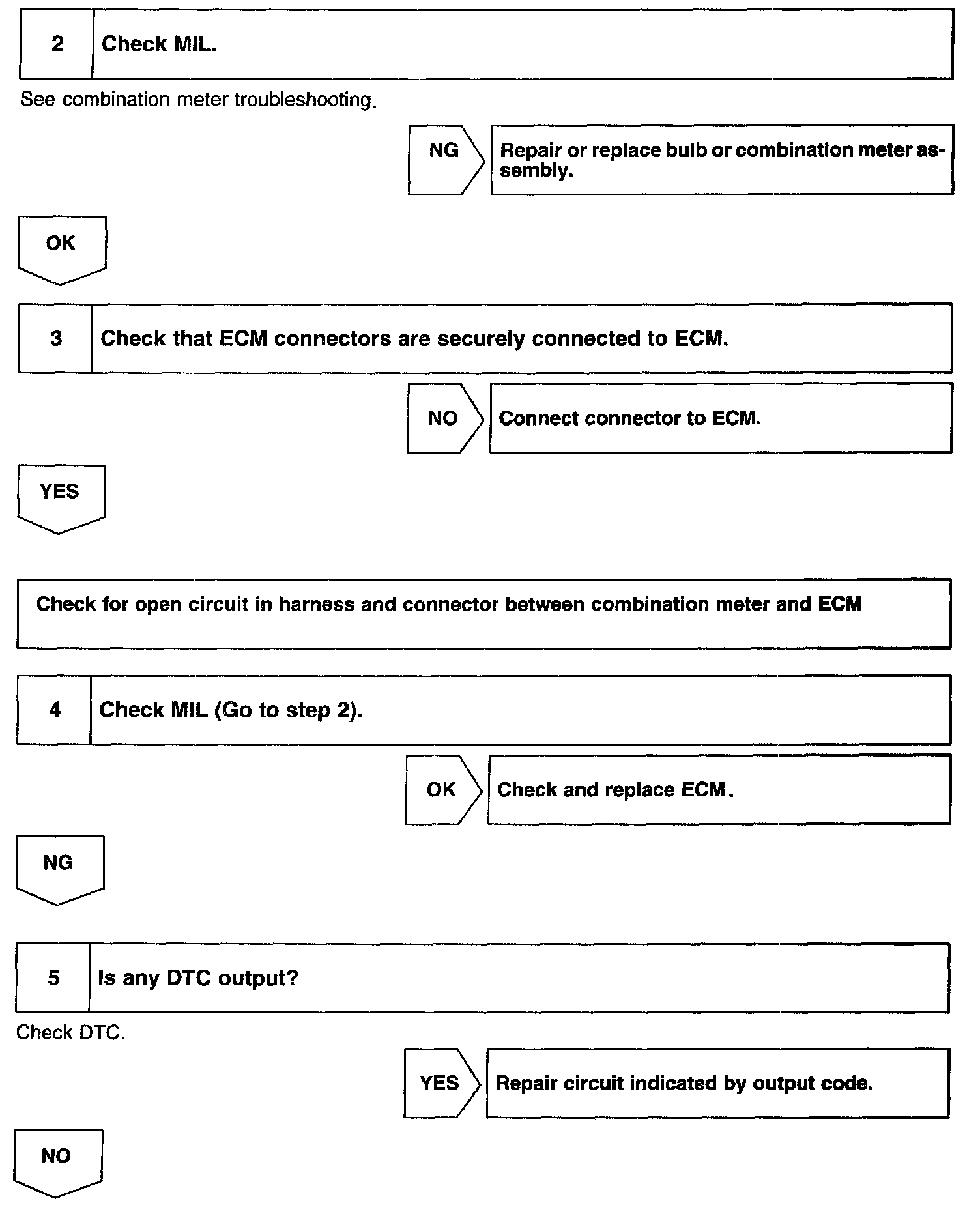 CIRCUIT DESCRIPTIONIf the ECM detects trouble, the MIL lights up. At this time, the ECM records a DTC in memory.