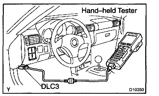 4. Connect the hand-held tester to the DLC3 at the lower portion of the instrument panel.