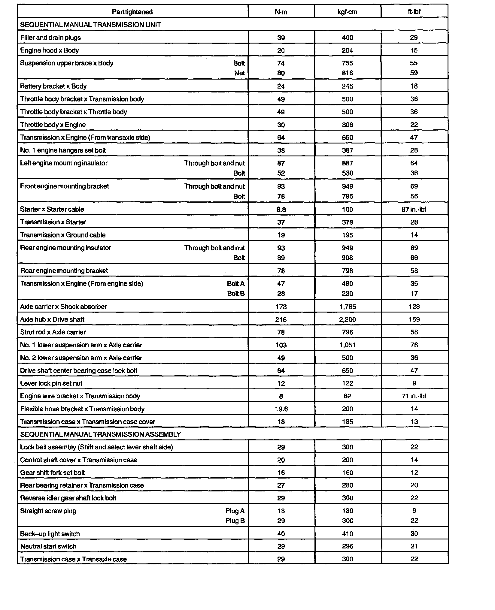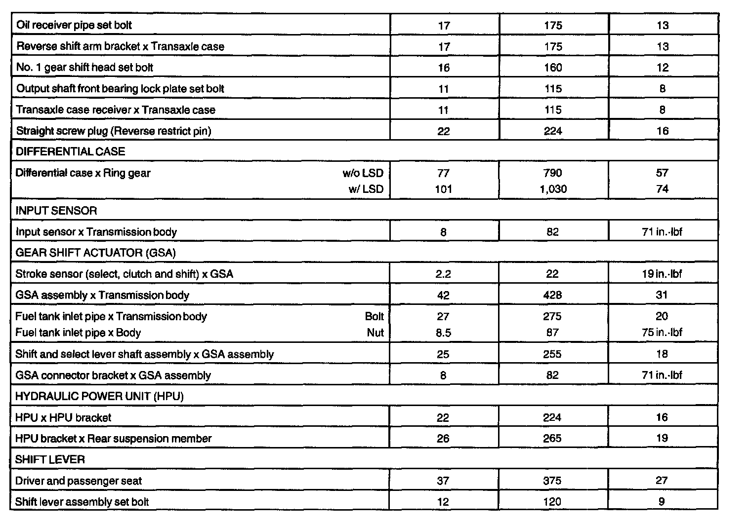 TORQUE SPECIFICATION