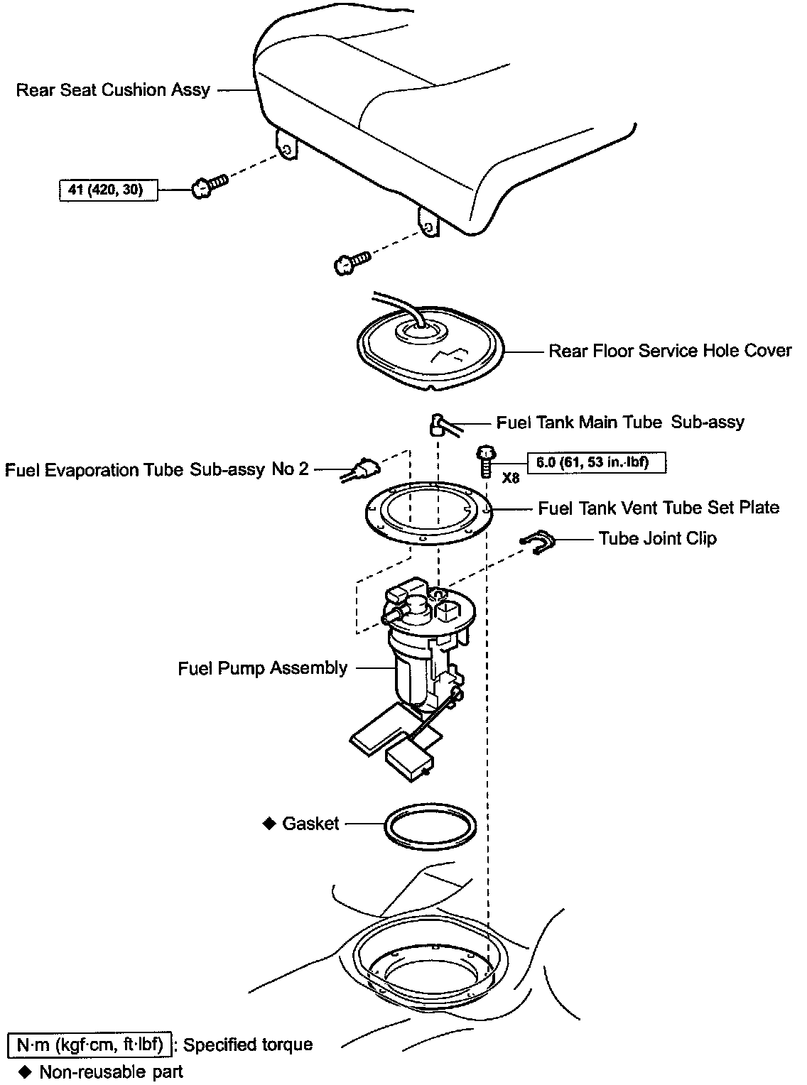 The fuel filter is part of the fuel pump assembly and is located underneath the rear seat cushion inside the fuel tank.