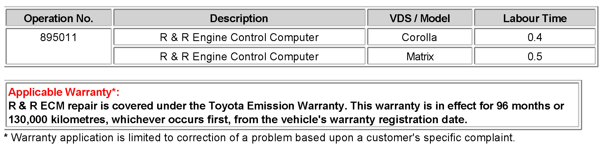 Some 2003 model year Corolla and Matrix vehicles equipped with a 1ZZ-FE engine may exhibit a M.I.L. "ON" condition with Diagnostic Trouble Codes P0136 and P0420 stored in the Engine Control Module (ECM). Use the following procedure to replace the engine ECM.