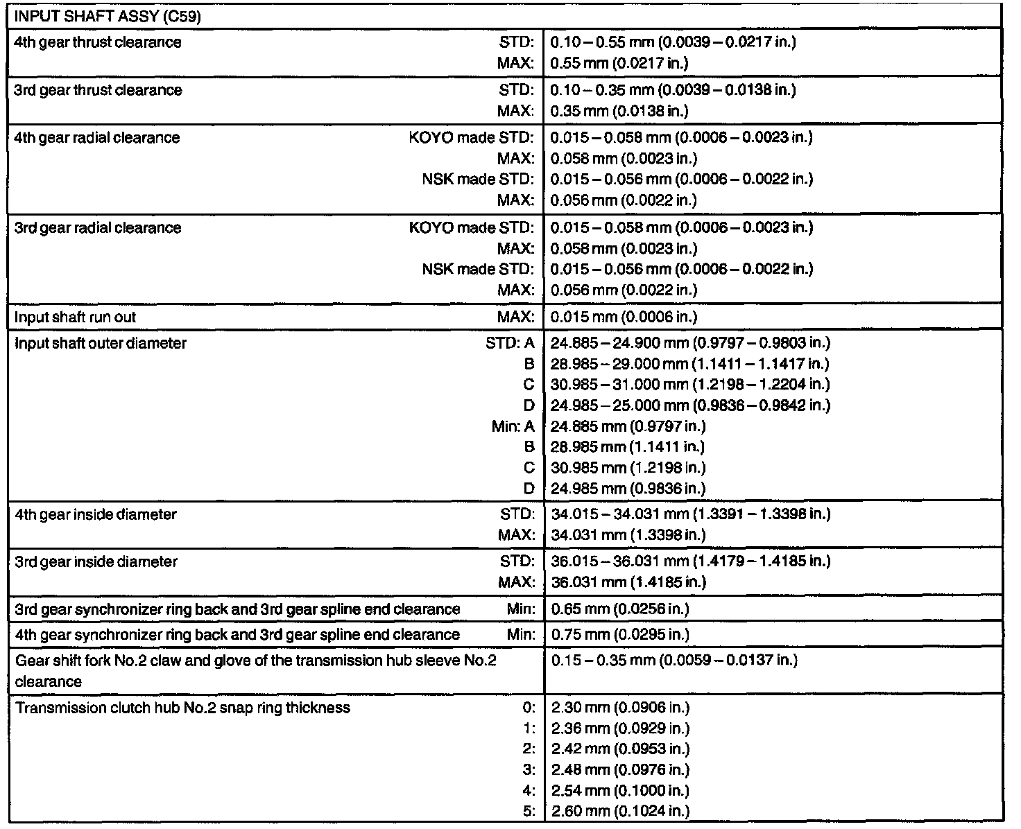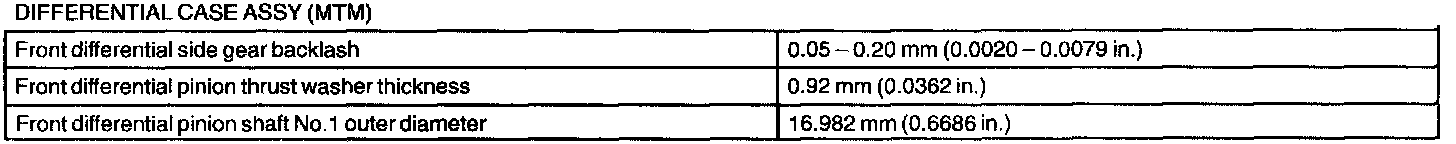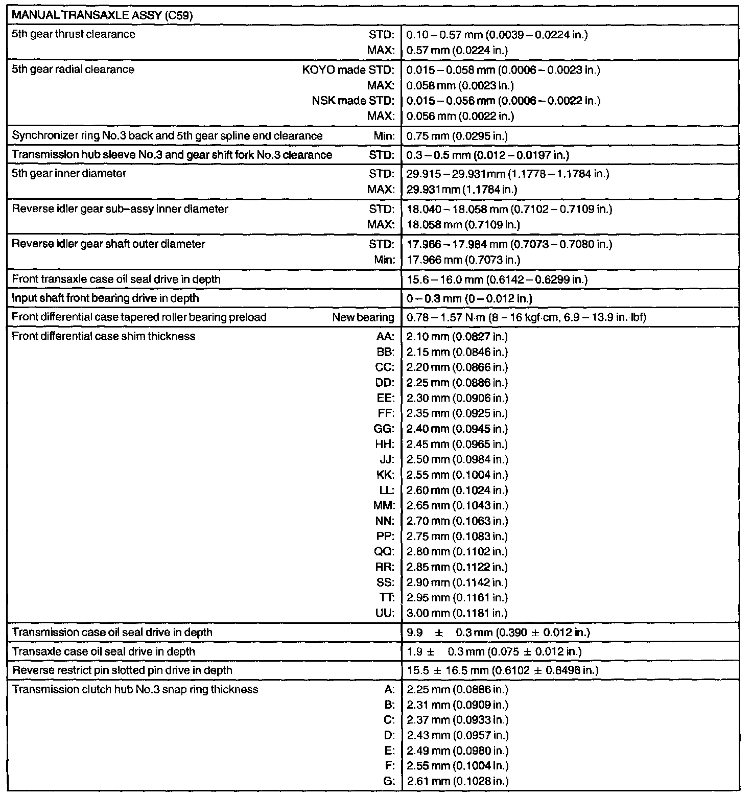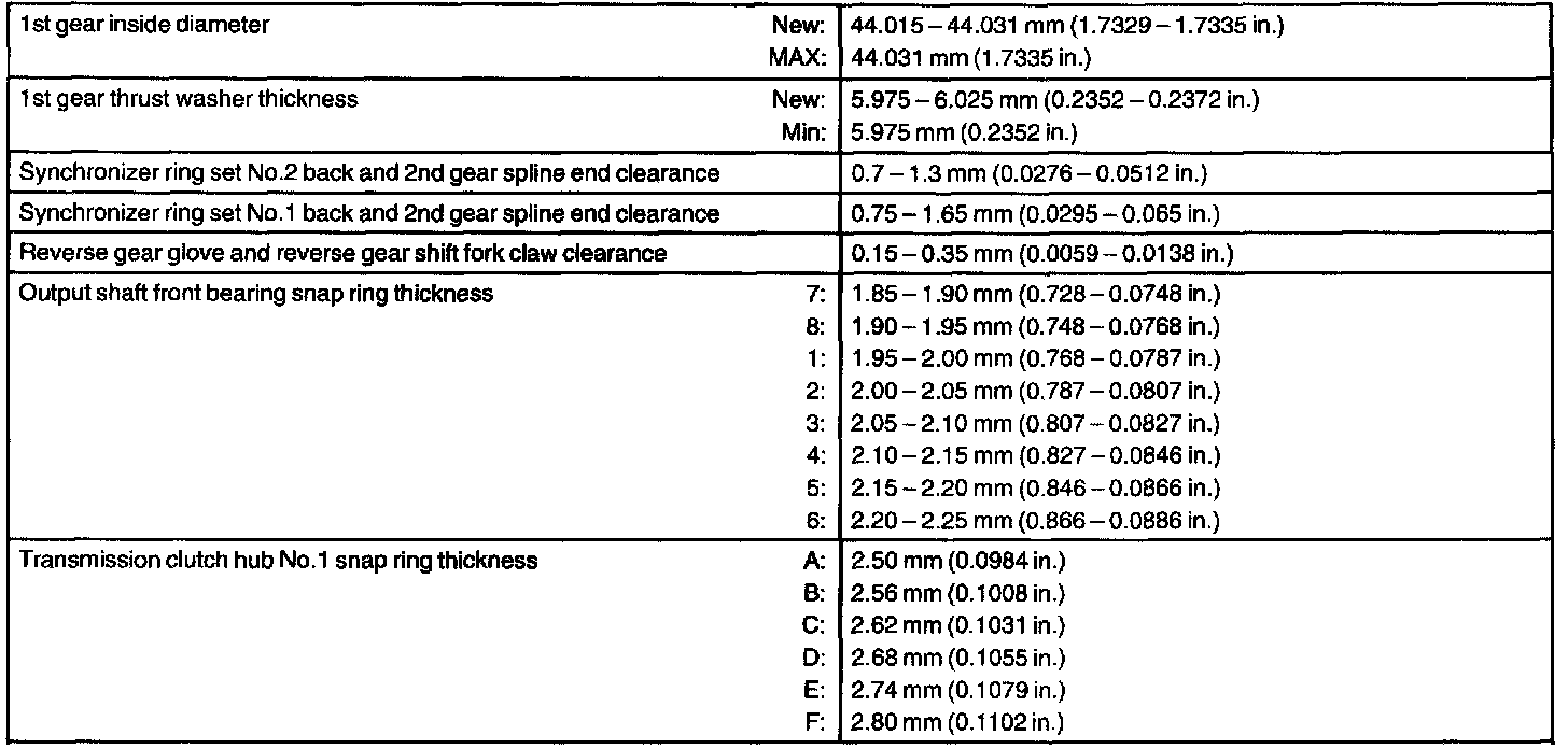 Manual Transaxle Assy - Service Data: