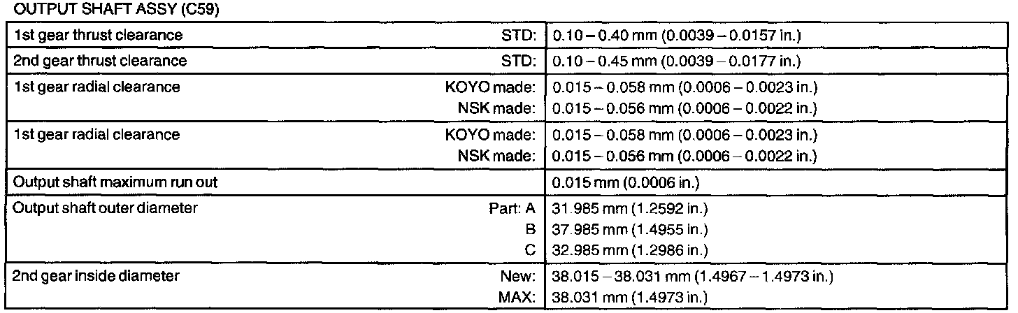 Output Shaft Assy - Service Data Part 2: