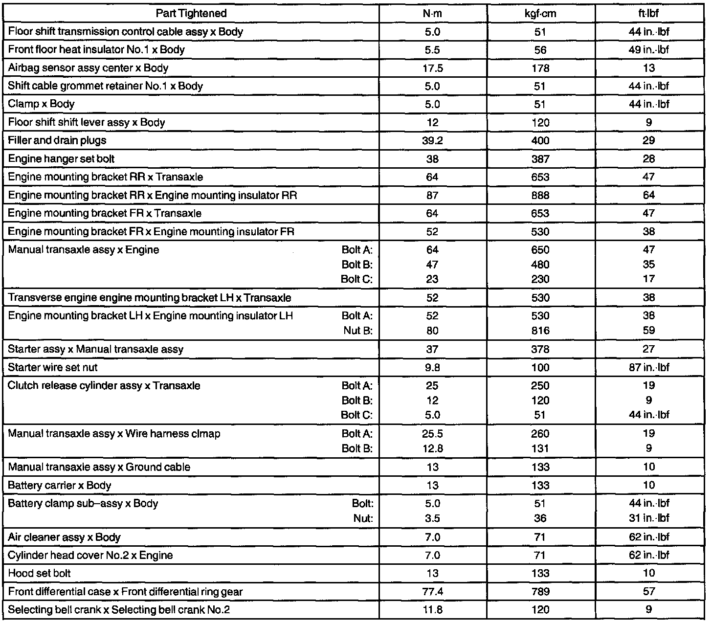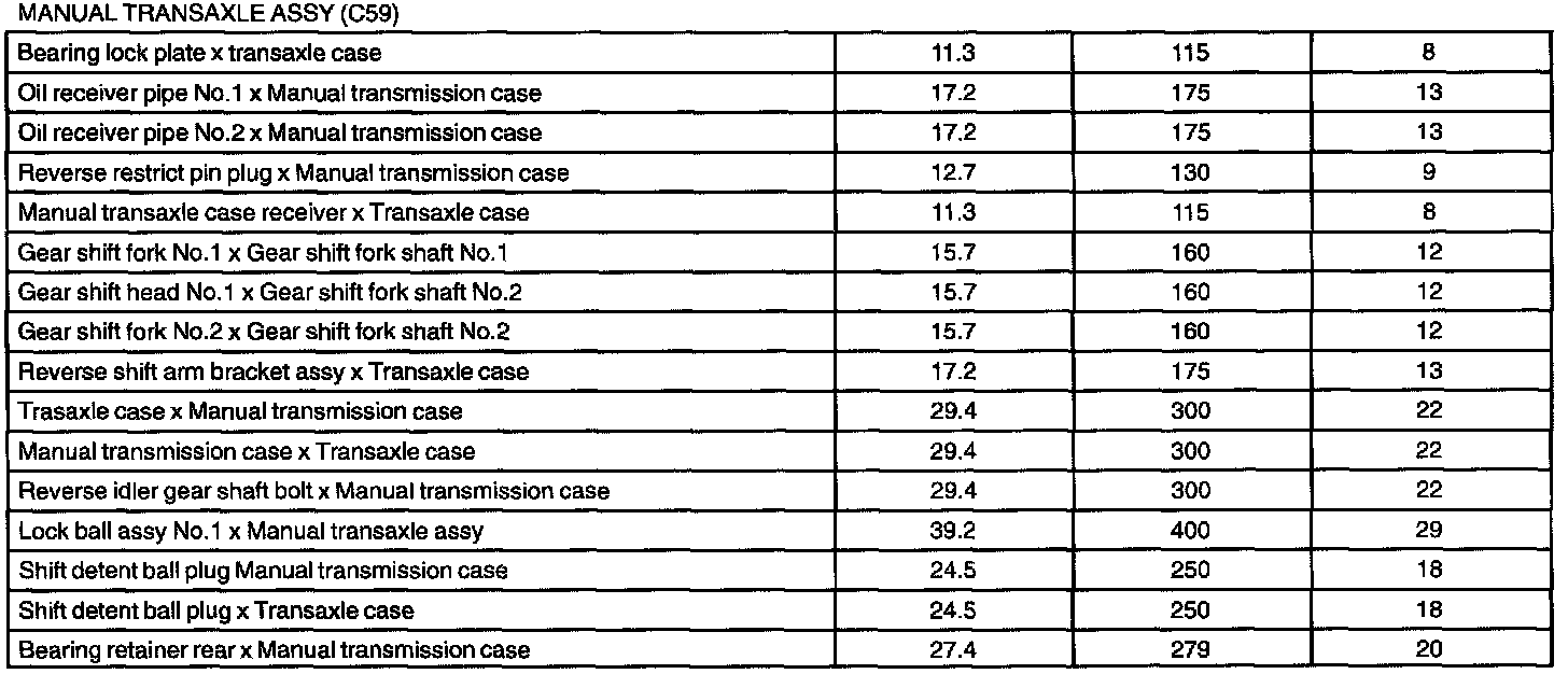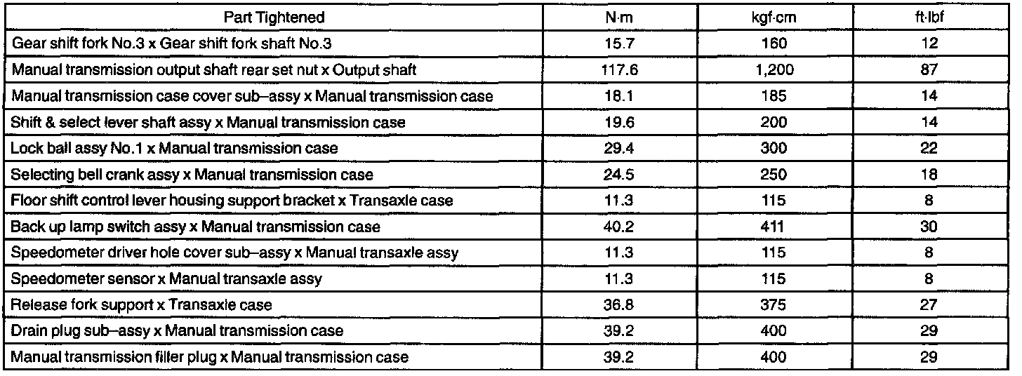 Manual Transaxle Assy - Torque Specification Part 1: