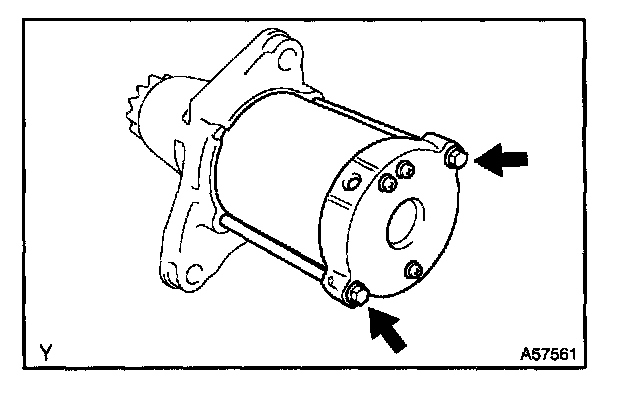 b. Remove the 2 through bolts, and pull out the starter yoke assy together with the commutator end frame assy.