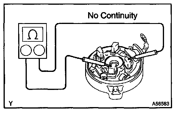 If the there is continuity repair or replace the starter commutator end frame assy.