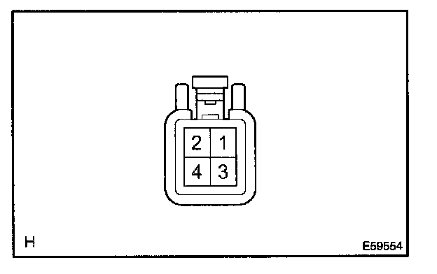 1. Connect the battery (+) to terminal 4 (+1) of the connector, the battery (-) to terminal 1 (-) of the connector, and check that the rear wiper motor operates.