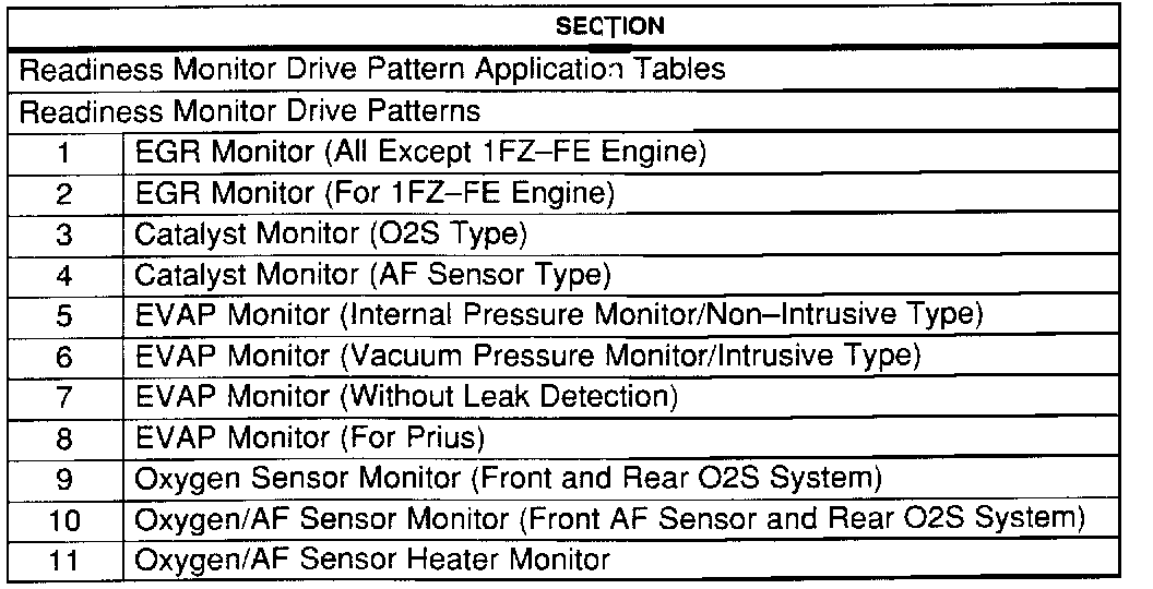 Refer to the Readiness Monitor Drive Pattern Application Table to determine which drive pattern should be followed.