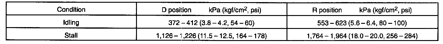 8. Depress the accelerator pedal all the way down. Quickly read the highest line pressure when the engine speed reaches the stall speed.