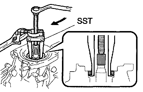 a. Using SST, remove the rear drive pinion front tapered roller bearing from the drive pinion.