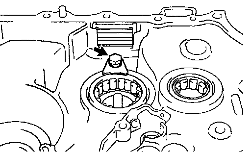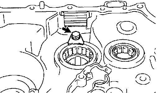 HINT: Align the mark on the reverse idler gear shaft with the bolt hole shown in the illustration.