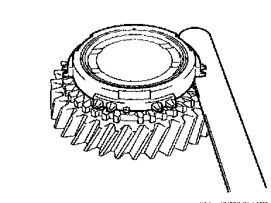 d. Using a feeler gauge, measure the clearance between the synchronizer ring back and gear spline end.