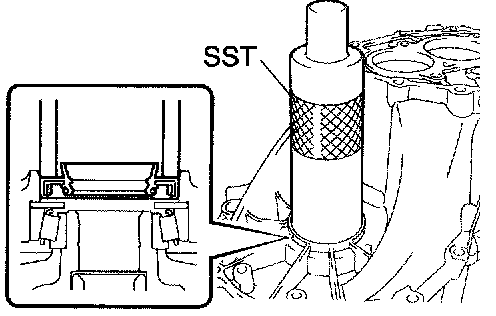 a. Using SST and a hammer, install a new front transaxle case oil seal to the transaxle case.