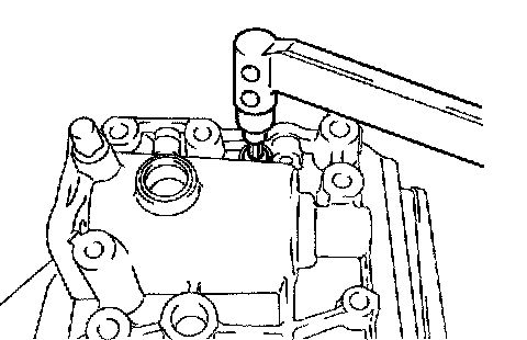 d. Using a hexagon wrench and a torque wrench, install the reverse restrict pin plug to the manual transmission case.