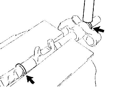 e. Using a brass bar and a hammer, install the shaft snap ring to the gear shift fork shaft No. 1.