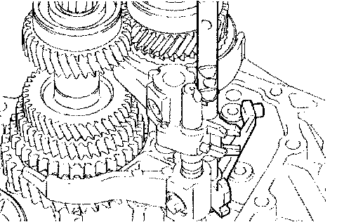 NOTICE: To avoid the interference of the 2 shift fork balls, lift up the gear shift fork shaft No. 3 at the position shown in the illustration.