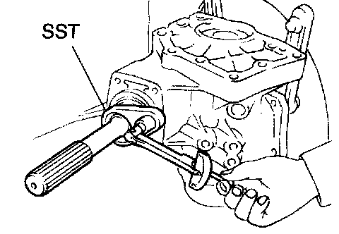 a. Using SST and a hammer, drive a new oil seal into the extension housing until the position in the illustration.
