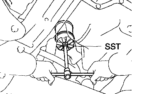 a. Using SST, remove the oil filter