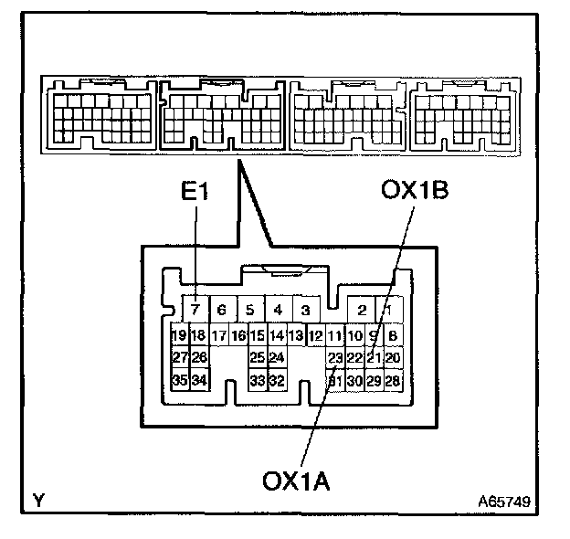a. Connect the hand-held tester to the terminal 23 (OX1A) <-> 7 (E1) and 21 (OX1B) <-> 7 (E1) of the ECM.