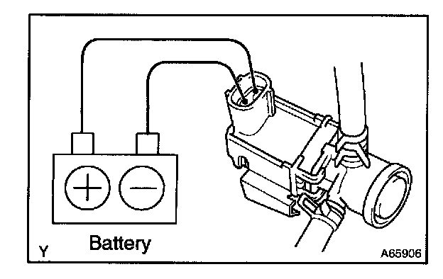 2. Connect the positive (+) and negative (-) leads from the battery to the VSV terminals for the EVAP.