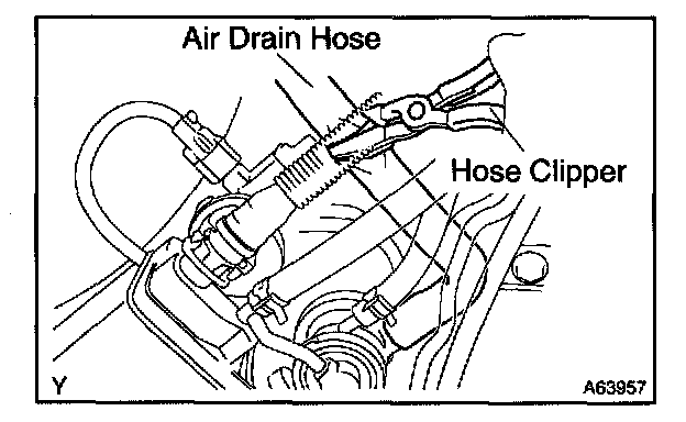 1. Close off the air drain hose at the marked position of the canister with a hose clipper or similar instrument.