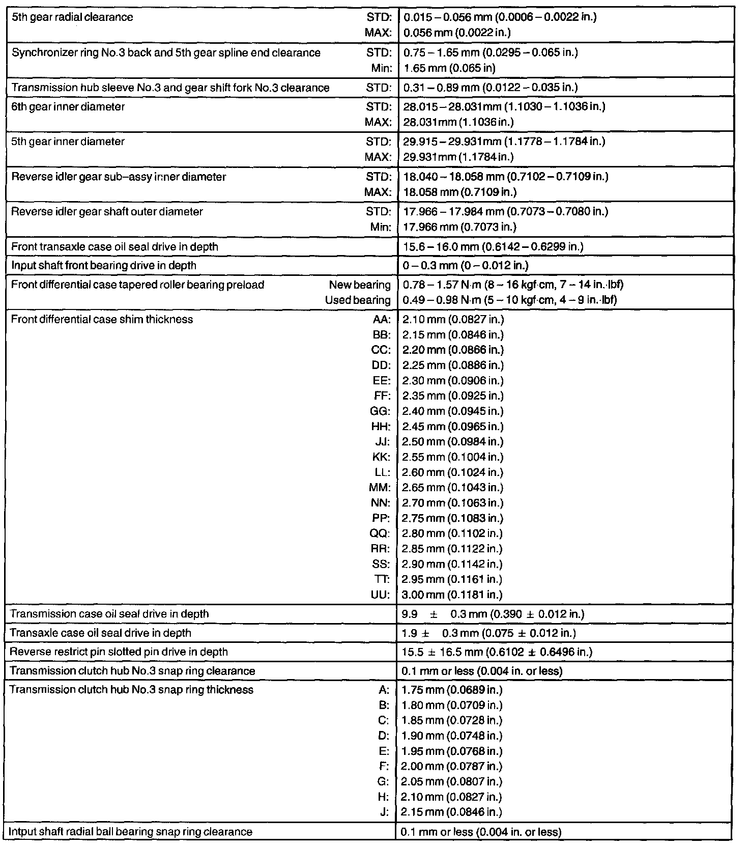Manual Transaxle Assy - Service Data Part 2: