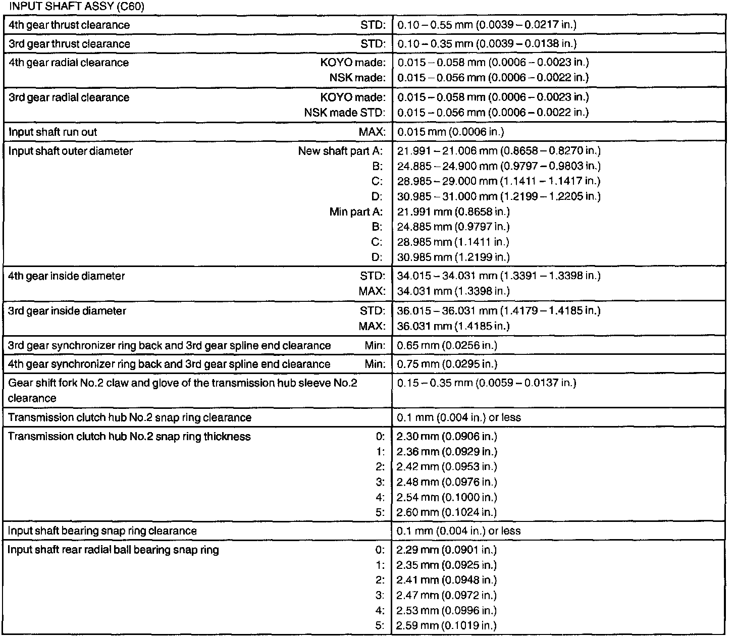 Input Shaft Assy - Service Data: