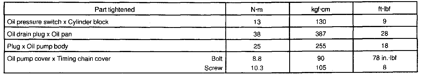 TORQUE SPECIFICATION: