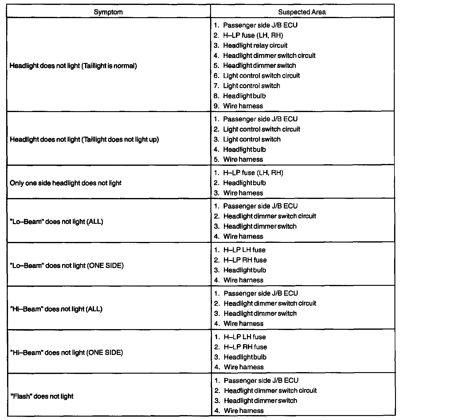 Problem Symptoms Table - Headlight And Taillight System: